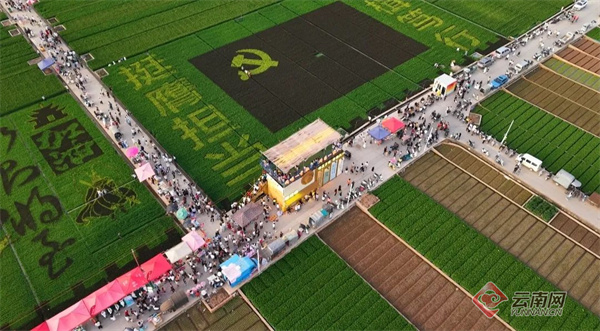 通海六一社区牛角坝塘稻田“稻画”景观 龚瑞清 摄