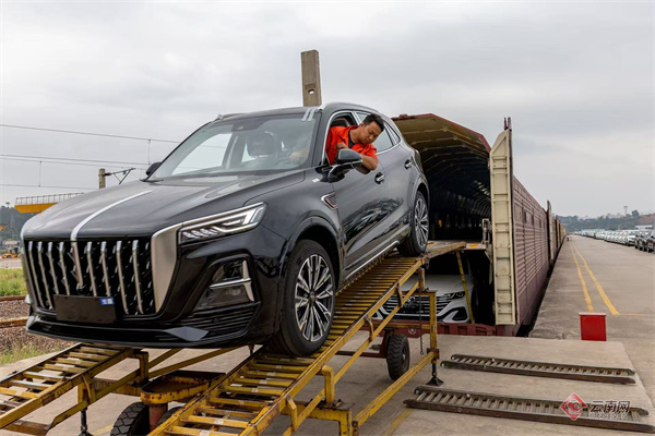 云南网讯(记者 夏方海 通讯员 罗扬 李思瑶)记者从中国铁路昆明局集团有限公司(以下简称:国铁昆明局)获悉,一列满载中国国产新能源汽车的铁路JSQ型专用运输车组,于日前在昆明王家营西站始发驶向老挝万象南站。该车组单日发运国产新能源汽车达11车95台,创下中老铁路开通商品汽车国际联运业务以来的单日最高纪录。