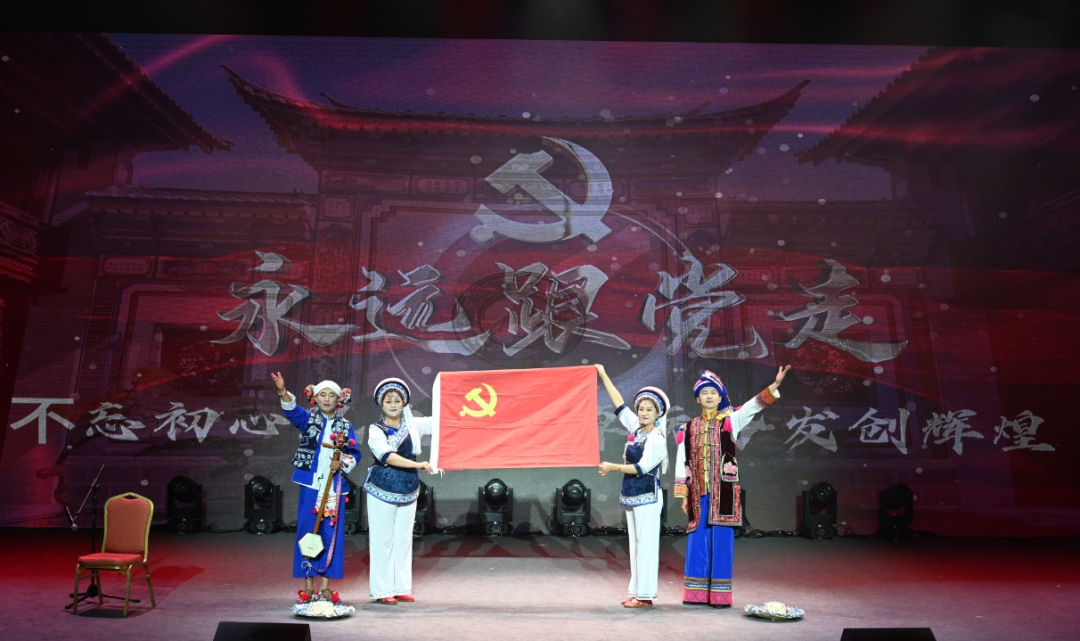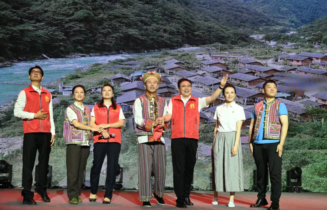 “发展新质生产力,洱海红帆再起航,稳中求进总基调,百舸争流迎难上!”舞台上,文艺类作品《苍洱春风舞红帆》正掀起高潮。云南省投资控股集团有限公司的职工们化身大理的“金花”和“阿鹏”,用群众喜闻乐见的白族三弦和大本曲宣传党的二十届三中全会精神。悦耳的三弦声和字正腔圆的大本曲让现场观众感受到了白族传统艺术魅力的同时,也在喜闻乐见的宣讲方式中学习党的创新理论。