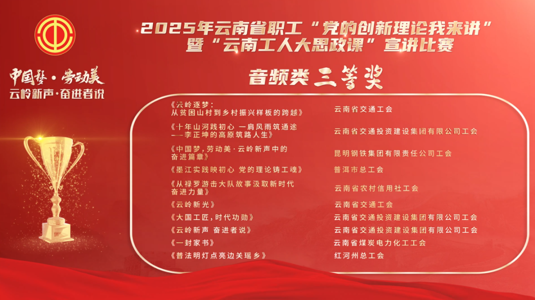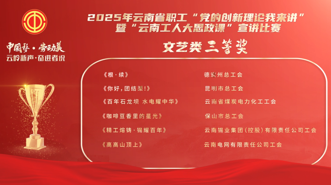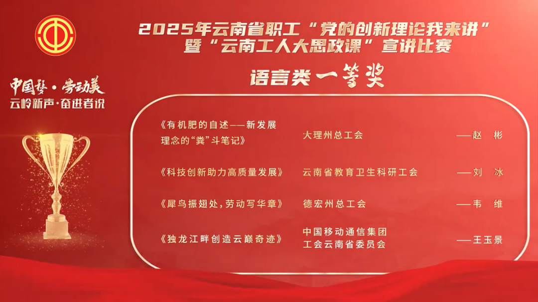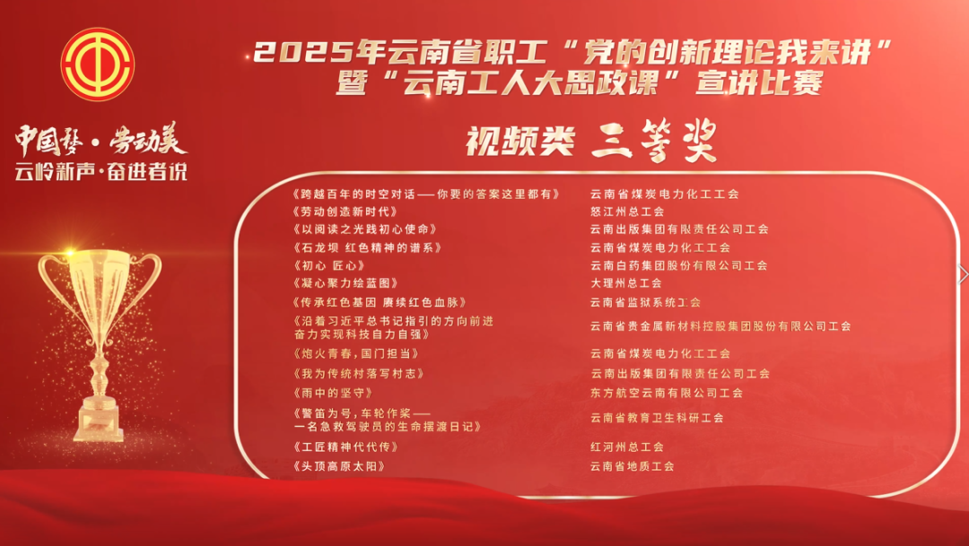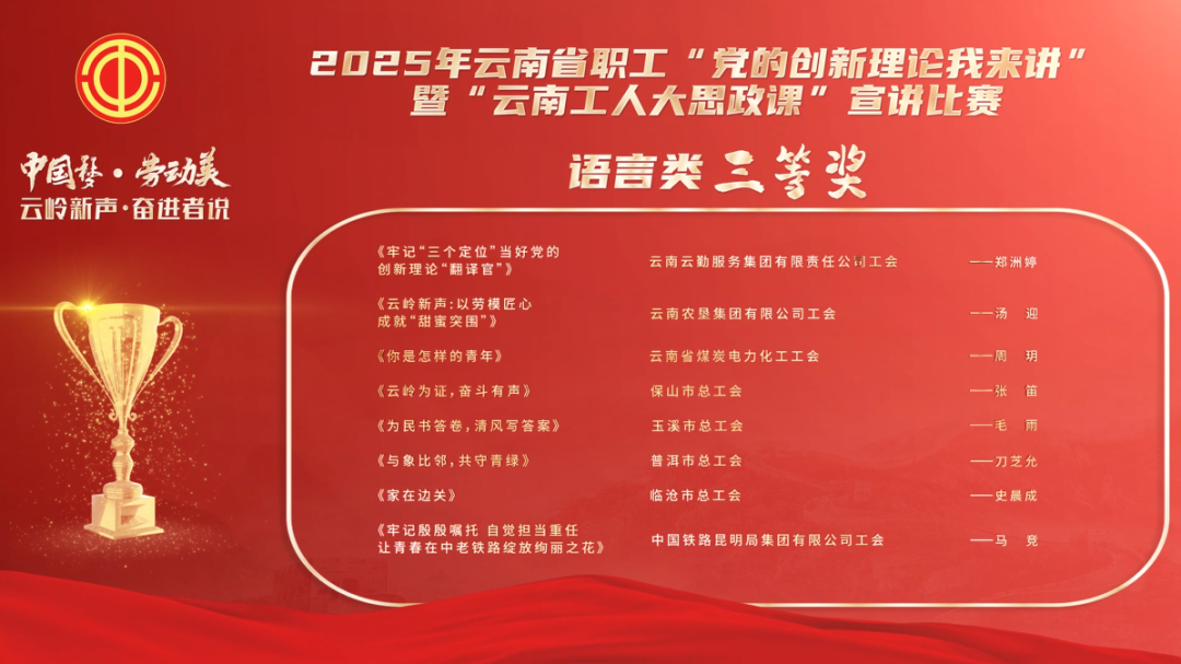 当屏幕上映出车间里挥汗如雨的镜头,当讲述中夹杂着熟悉的乡音俚语,当理论的光芒照亮那些日日可见的平凡身影时,一种强烈的共鸣在观众席间无声传递。活动虽然结束了,但那些带着车间油渍味、田野稻香和键盘余温的故事,已如万千星火散向红土高原。省总工会号召全省各级工会组织,持续深化“党的创新理论我来讲”活动,不断擦亮“云南工人大思政课”品牌;号召全省广大职工以先进为榜样,自觉用党的创新理论凝心铸魂,将学习成果转化为立足岗位、创新创造、建功立业的实际行动,在推动云南高质量跨越式发展、谱写中国式现代化云南篇章的伟大实践中,展现工人阶级的磅礴伟力!