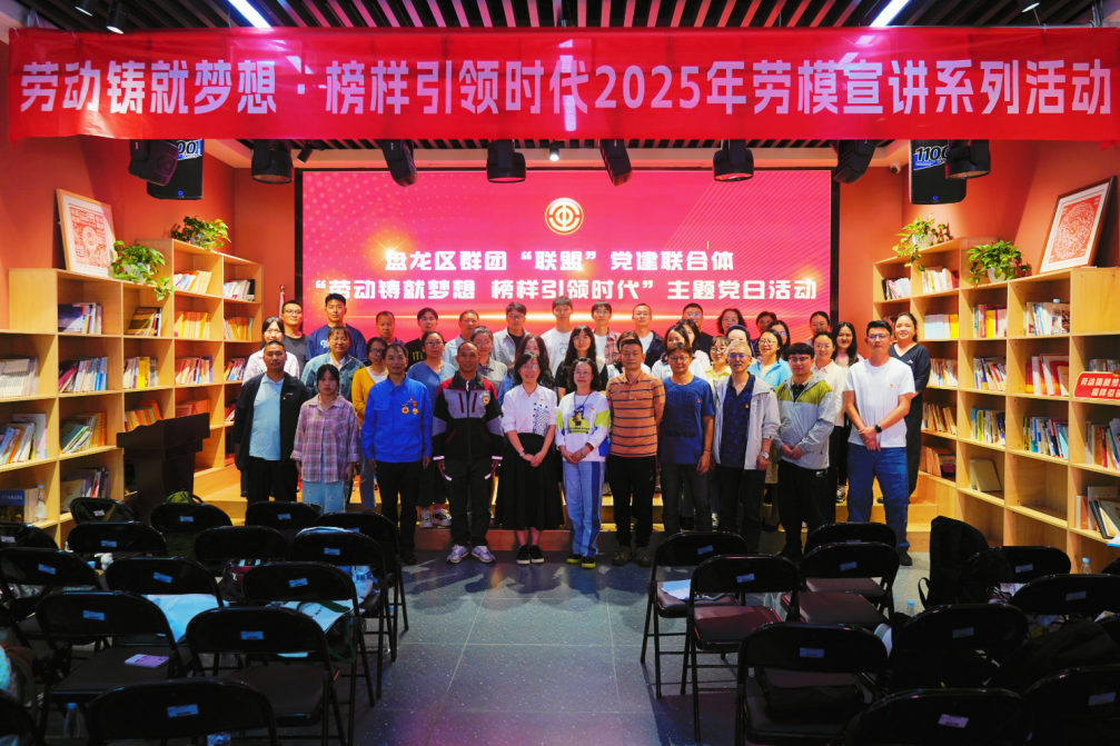 为大力弘扬劳模精神、劳动精神、工匠精神,为“六个春城”建设凝聚奋进力量,7月31日,由昆明市总工会主办、昆明市工人文化宫承办的“劳动铸就梦想·榜样引领时代——2025年劳模宣讲系列活动”第二场在昆明市工人文化宫拉开帷幕。两位来自不同行业、却在平凡岗位上创造非凡业绩的全国劳动模范,用他们的亲身经历和深刻感悟,为现场职工代表带来了一场精神盛宴。为弘扬“三个精神”,加强盘龙区群团“联盟”党建联合体各成员单位之间的沟通与协作,盘龙区群团“联盟”党建联合体组织50余名职工到昆明市工人文化宫开展主题党日活动,并聆听了这场劳模宣讲。