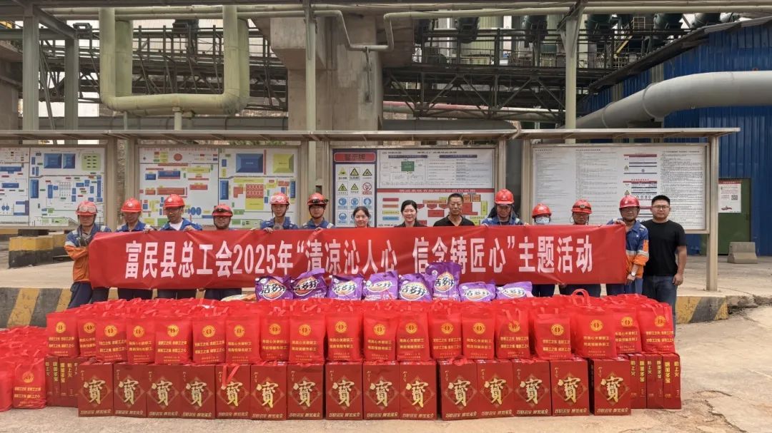 慰问现场,富民县总工会副主席充分肯定职工坚守:“无论是直面烈日的户外战场,还是炙烤考验的锅炉阵地,每个岗位都是企业运转的关键螺丝钉!你们在极端环境中的坚守是企业发展的基石,更是奋斗精神最生动的诠释!”真挚话语引发热烈掌声与认同笑声。