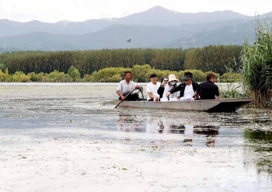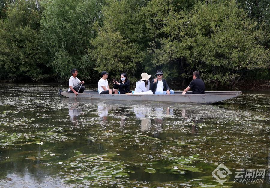夏秋交替时节,在大理白族自治州剑川县剑湖湿地公园,白桦林倒影水面,白柳苇塘青翠林荫;盛开的海菜花、水莲花(荇菜)铺就"水面花毯",呈现水生态的诗篇与秘语;游人乘舟穿行湿地生态水道,畅游湖面,观湖光山色,赏湿地美景,尽享生态休闲清凉假日;还有不少省外游人自驾房车前来避暑旅游,在湿地公园畅享美好生态环境,体验生态旅游独特魅力。