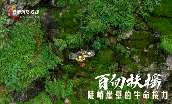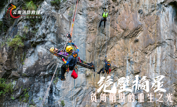 “主绳收紧,保持担架水平!”随着安徽省消防救援总队指挥员指令传来,崖壁上的队员与栈道上的队友同步发力,担架在岩壁上方缓缓爬升,阳光透过云层洒在紧绷的绳索上,宛如一条连接生命的金色纽带。