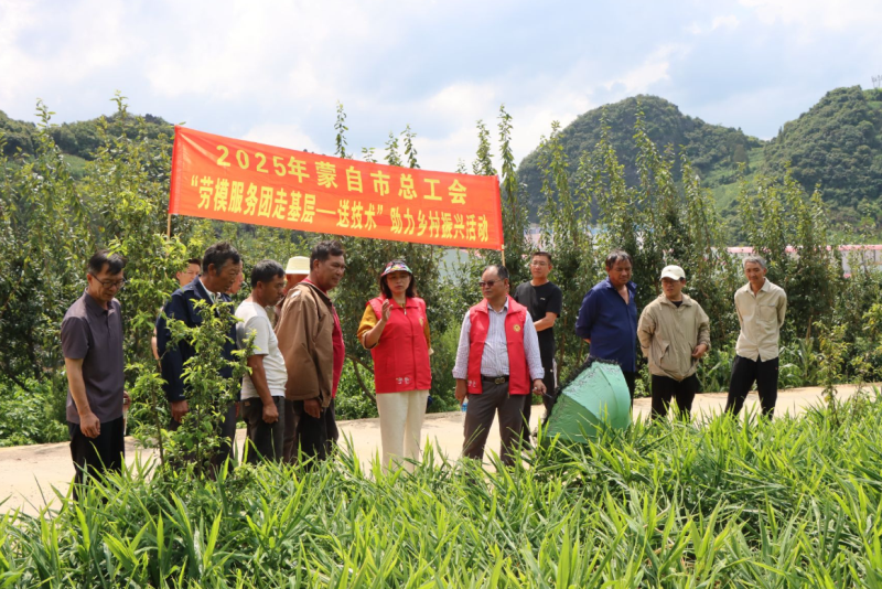8月14日,蒙自市总工会开展2025年“劳模服务团走基层——送技术”助力乡村振兴活动,组织由张跃伟、李俊、张先奇等10名农业领域劳模代表组成的劳模服务团深入芷村镇黑拉冲村,为当地群众送去实用的专业技术指导。