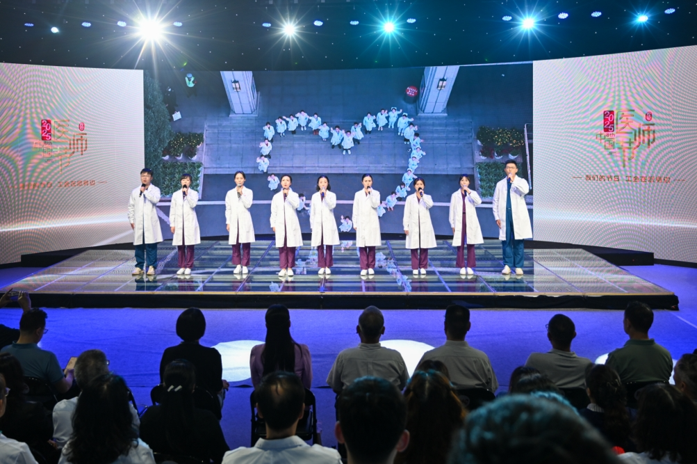 随着现场的灯光逐渐暗下来,活动在展现医者风采的主题视频中拉开帷幕。省疾病预防控制中心王紫鉴的思政宣讲《42度的星火》,诠释了医者滚烫的初心与热血。全国先进工作者、省肿瘤医院李高峰主任医师,以及全国卫生健康系统先进工作者、省第一人民医院吴晓梅主任医师,分别用朴实的语言分享了他们敬佑生命、救死扶伤、甘于奉献的从医经历和心得,感人至深。昆明城建学院工会马梦珊的配乐朗诵《不朽》,深情讴歌了医者精神的永恒价值。省急救中心皮晓娇的宣讲《生命线上的红色传承》,则展现了急救工作者守护生命的使命接力。省第一人民医院带来的节目《医者·使命》和舞蹈《信念》,用艺术的形式生动演绎了白衣天使们守护生命、信念坚定的崇高形象。活动现场还播放了来自全省各相关医疗单位医师们对节日的诚挚祝福视频。