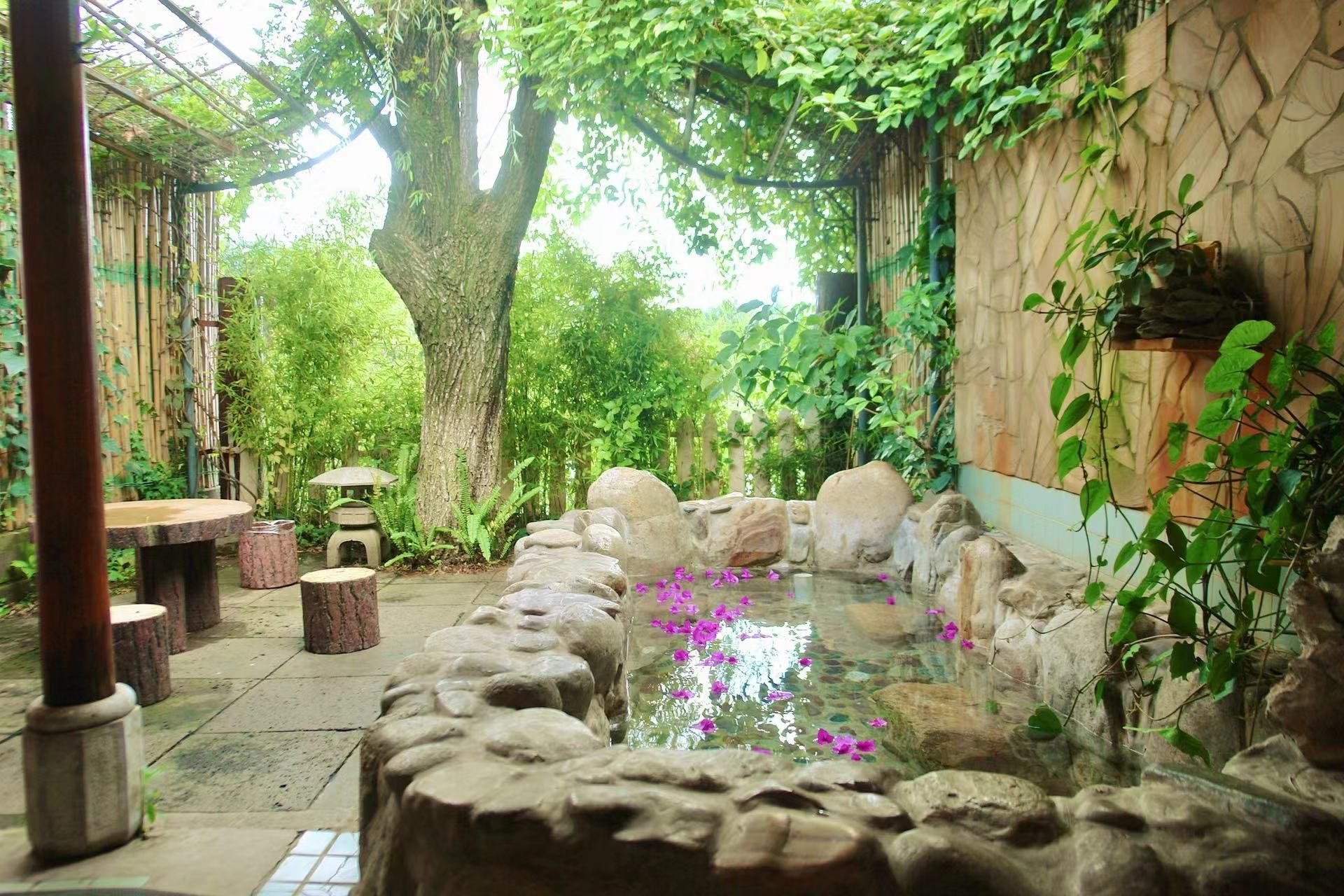 园区内分布着40多个功能各异的露天泡池,依地势起伏错落布置,掩映于花草树木之间。高中低温池区通过巧妙的高差设计,实现温泉水的阶梯式利用,让游客在不同体感温度中寻找到最适合自己的那一池温暖。