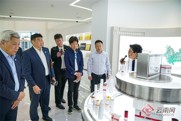 在贝泰妮集团,考察团一行听取了园区大健康产业发展情况介绍,并深入了解贝泰妮集团在推进植物原料开发、提升附加值、打造皮肤健康生态等方面的突出成就。