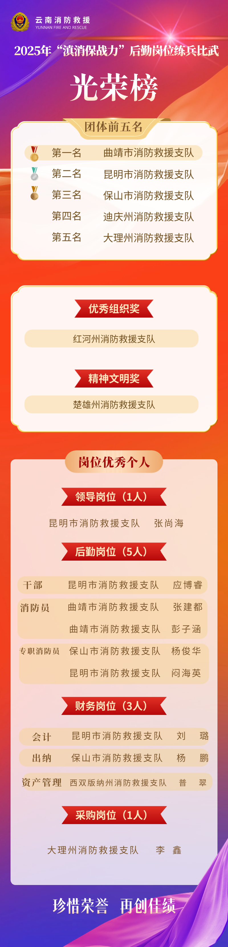 8月28日,云南省消防救援队伍2025年滇消保战力后勤岗位练兵比武竞赛圆满闭幕。