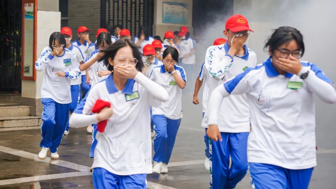 临沧市组织开展校园火灾疏散逃生演练,师生以班为单位,分方向、按既定路线从教学楼撤离。