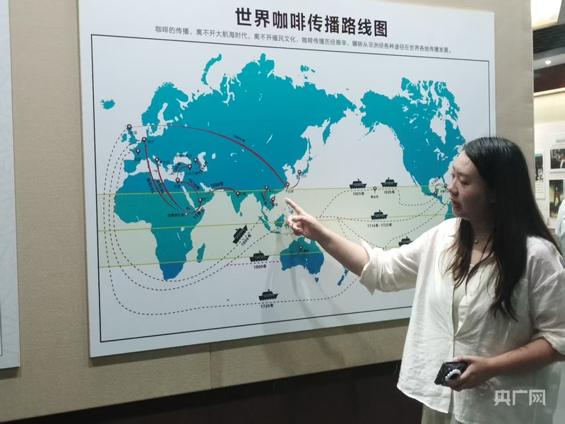 工作人员正在讲解咖啡传播的知识(央广网实习记者 白欣然 摄)