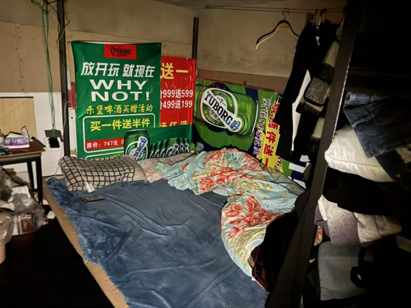 隐患问题:商铺一层租售电动自行车,住宿2人,住宿区域与经营区未进行防火分隔、未设独立安全出口。