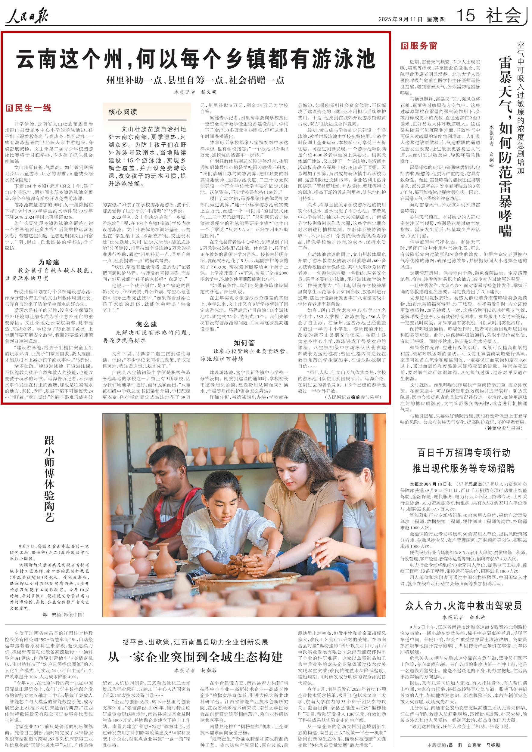 文山壮族苗族自治州地处云南东南部,夏季湿热、河湖众多。为防止孩子们在野外游泳导致溺水,当地陆续建设115个游泳池,实现乡镇全覆盖,并开设免费游泳课,改变孩子的玩水习惯,提升游泳技能。