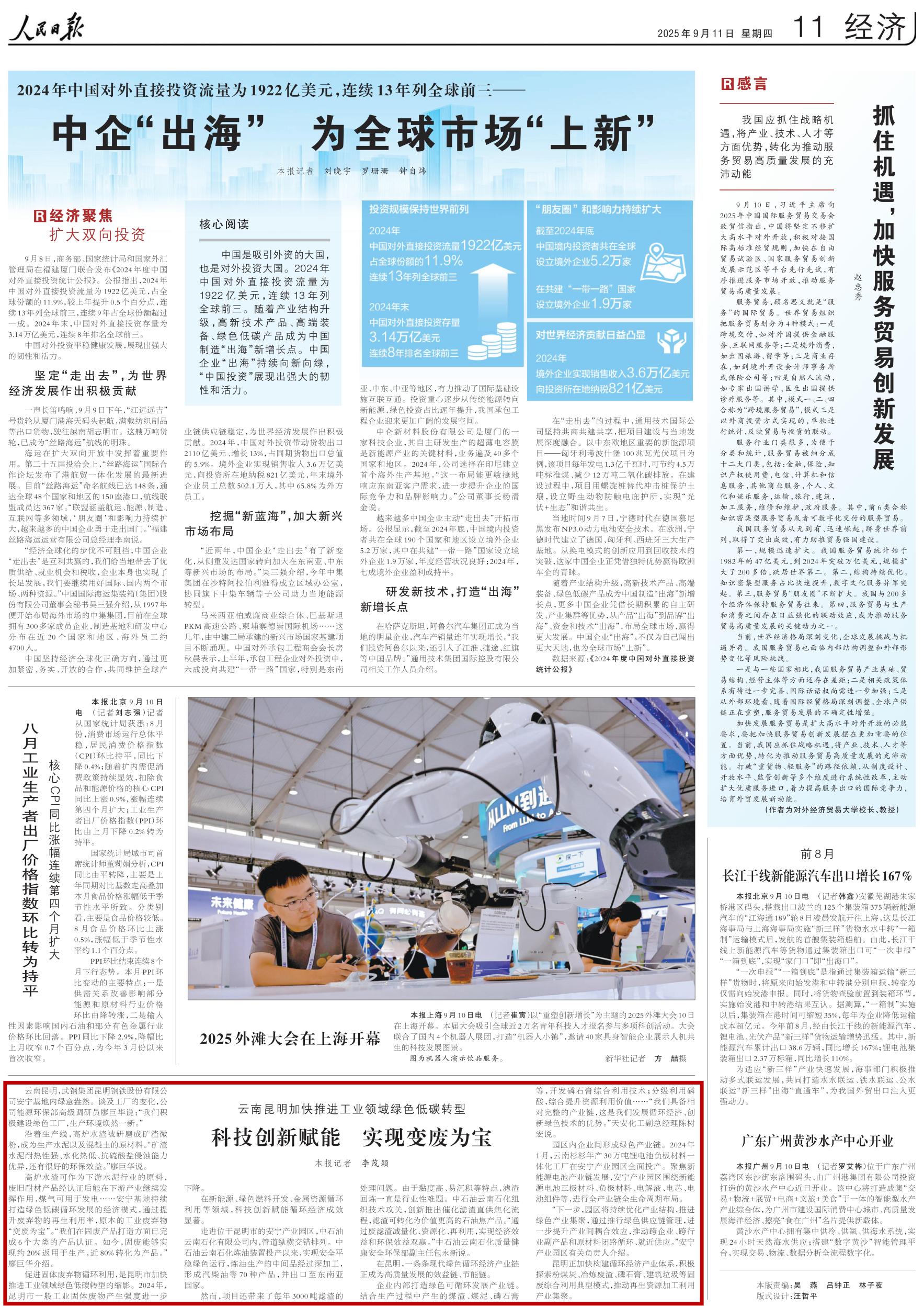 促进固体废弃物循环利用,是昆明市加快推进工业领域绿色低碳转型的缩影。2024年,昆明市一般工业固体废物产生强度进一步下降。