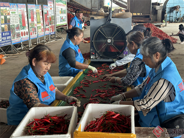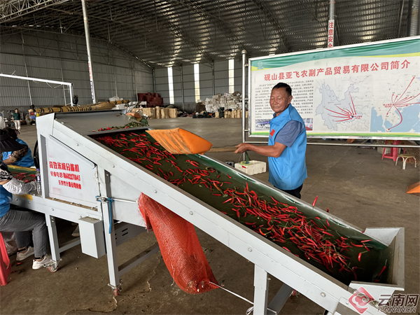 砚山县亚飞农副产品贸易有限公司负责人介绍,公司通过“合作社育苗+农户种植+粗加工+收购销售”的模式联动发展,涵盖辣椒种子、育苗、种植、粗加工、收购、销售等全环节,每年收购量达1万吨左右,产品远销全国各地并出口东南亚国家。“忙时我们用工量达200多人,每人日均工资150元。这些产品销往北京、上海、广州等城市,还出口越南、泰国等东南亚国家。”