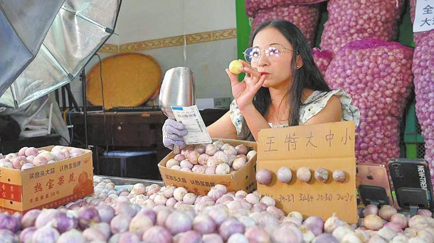 在不断摸索实践的过程中,晏林英惊喜地发现,独头蒜相比其他果蔬,更适合电商销售。“独头蒜本身是球体,皮比较厚,耐摔耐放,打包不用加那么多包装材料,一个箱子装满就可以拉走。卖出去的独头蒜好评率很高,需要解决的售后问题、再次投入的售后成本都比较少。”晏林英介绍。
