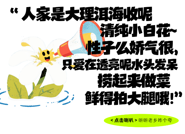 “海菜花,开白花,爱洗澡的小娃娃,清清水、不带泥、不带脏,洱源处处是我家。”