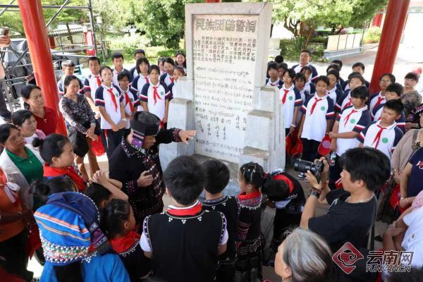 9月20日,在位于宁洱县的民族团结誓词碑前,碑文镌刻者之一、当年盟誓代表的后代方财兵,正深情地向来自各族的群众和青年学生们讲述着那段跨越时空的民族团结佳话。方财兵以父辈的亲身经历为线索,将人们的思绪带回到1951年那个意义非凡的时刻。他动情地讲述了各民族代表如何经过坦诚沟通、深入协商,最终“会盟立誓”,刻石为证。“这块碑是我们宁洱各族先辈们用真心和热血铸就的契约,是我们子孙后代必须永远铭记和传承的‘传家宝’。”方财兵指着身后的誓词碑说道。