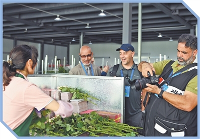 2025“一带一路”媒体合作论坛联合采访团成员在云南昆明参观绿色高效花卉生产示范基地。记者 陈斌 摄