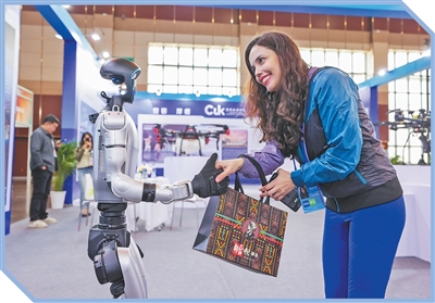2025“一带一路”媒体合作论坛联合采访团成员与机器人互动。记者 张武军 摄