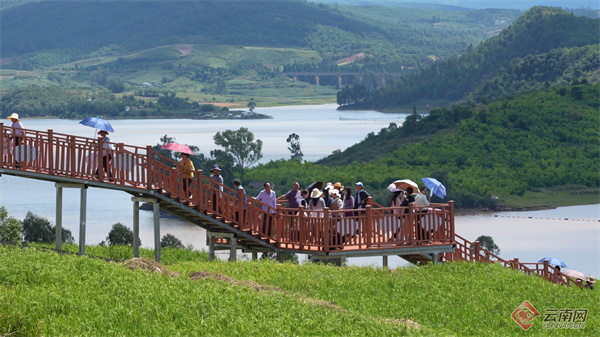 值得关注的是,在水果产业蓬勃发展的基础上,禄丰市正积极探索“农业+渔业+旅游”融合发展新路径。距离水果节主会场3公里的东河田园综合体渔旅融合项目,成为游客打卡热门地。该项目依托东河水库优质水资源,让游客在品尝美味水果的同时,还能体验垂钓乐趣,欣赏湖光山色,感受乡村生活的宁静惬意,实现“赏果、垂钓、休闲”一站式体验。和平镇人民政府镇长郭星伟介绍:“和平镇借助东河水库独特的自然资源优势,大力发展乡村旅游,打造了‘东河印象’农文旅融合示范点。以这个示范点为引领,带动周边村组群众发展了12家农家乐、乡村民宿,每年可接待游客约50万人次。”