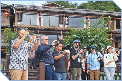 近日,中外媒体嘉宾参观腾冲和顺古镇。记者 翁奇羽 摄