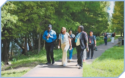 中外媒体嘉宾到云南大理白族自治州洱海生态廊道参观采访。