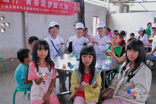 在陇川县罕等村活动中心,实践队员们成了孩子们的“暑期伙伴”。玩彩泥、做游戏,笑声在院子里打转;讲健康小知识,把“爱护身体”变成趣味故事;分享励志故事,让奋斗精神悄悄在孩子心里扎根。