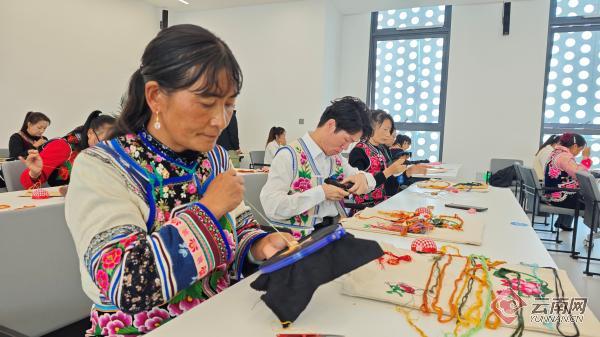 9月25日,云南省楚雄彝族自治州南华县至善非遗传习馆内,丝线翻飞、针脚灵动,“温州校友会—东大”杯第四届南华彝族刺绣技能大赛在此火热开赛。来自全县10乡镇的48名绣娘齐聚一堂,手拿绣片,飞针走线间,平针绣、乱针绣、打籽绣、螺旋绣等精彩呈现,将千年彝绣的独特魅力展现得淋漓尽致。