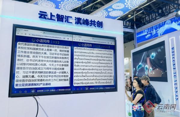 “欢迎来到全球数贸会云南展区!”小语智能信息科技(云南)有限公司工作人员将这句语音输入到云岭智能翻译机后,几秒钟时间中文就被翻译成了越南语。