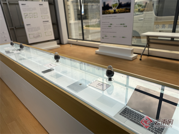 云南杉杉新材料有限公司展厅内展示的产品多元化应用场景。