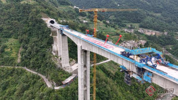 云南网讯(记者 胡晓蓉 通讯员 胡国英)记者从京昆高铁西昆公司获悉,9月30日上午,由中国铁建大桥局承建的渝昆高铁全线重难点控制性工程三股水特大桥顺利合龙,这是渝昆高铁全线首座墩高130米以上特高桥合龙,标志着渝昆高铁建设取得阶段性重要成果,为全线按期建成通车奠定了坚实基础。至此,渝昆高铁桥梁施工已完成超97%。