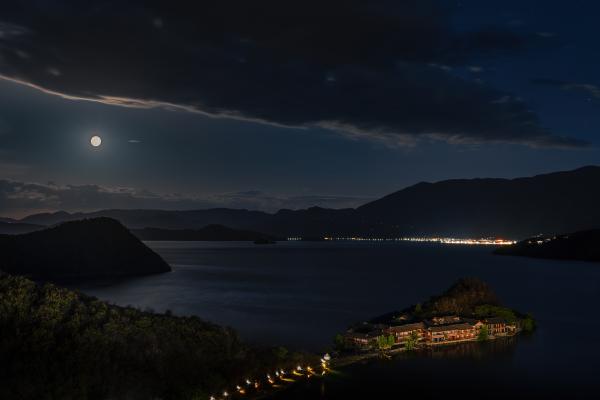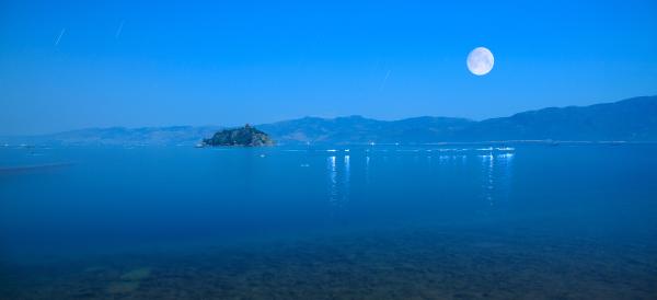 抚仙湖夜晚的“水中月”像沉在玻璃里的银盘
