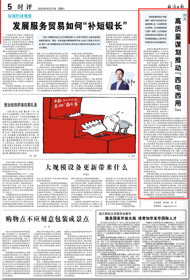 10月11日,经济日报刊发题为《高质量谋划推动“西电西用”》的评论文章,其中提到“云南经过多年发展已形成能源结构优、电力碳足迹低这一鲜明特色,可在推进产业绿色转型升级中更好发挥自身优势”。