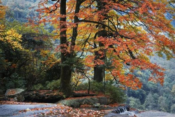 踏入彝良小草坝,穿行于林间小道,脚下是松软厚积的落叶,每一步都沙沙作响。阳光透过疏密不一的枝叶,筛下斑驳陆离的光影。在这里,枫叶红得像一簇簇燃烧的火焰,热烈而纯粹,银杏叶黄得明亮而灿烂,冷杉与常青树则是苍翠的本色,衬托出秋日的斑斓,还有其他植物的橙色、褐色在其中过渡,层层叠叠,交织错落,构成一幅流光溢彩的立体油画,加上云雾笼罩,让本就绚丽的色彩更添几分梦幻。