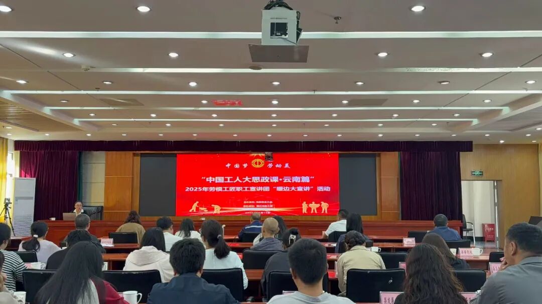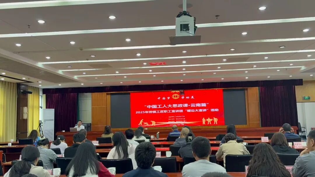 为深入学习宣传贯彻党的二十大精神,大力弘扬劳模精神、劳动精神、工匠精神,在省、州总工会的指导下,福贡县总工会于2025年10月15日成功举办了云南省总工会劳模工匠职工宣讲团进福贡宣讲活动。