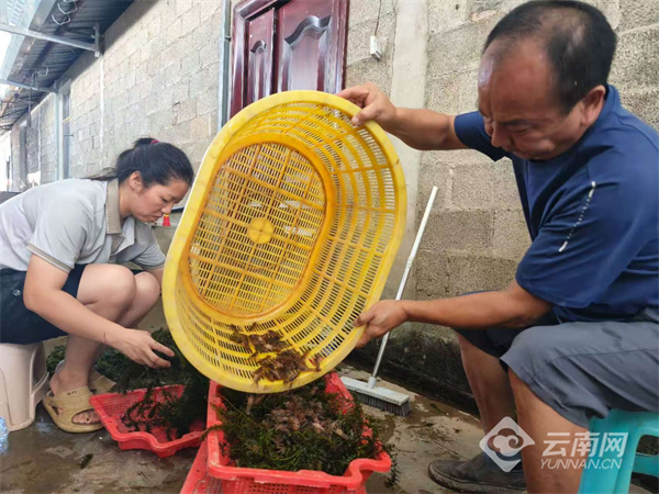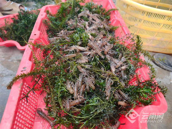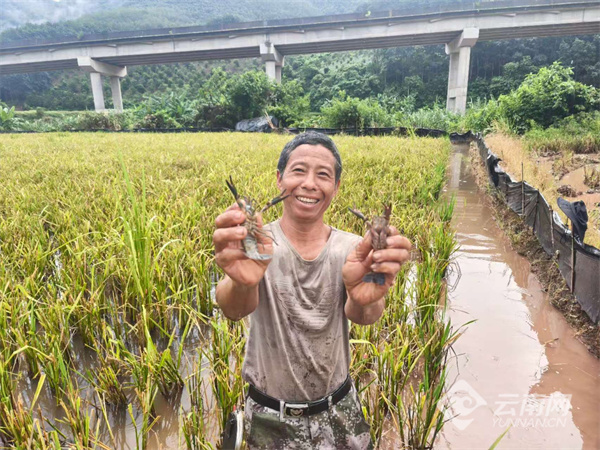 勐罕镇农户收获红螯鳌虾喜笑颜开。鲁鹏 摄