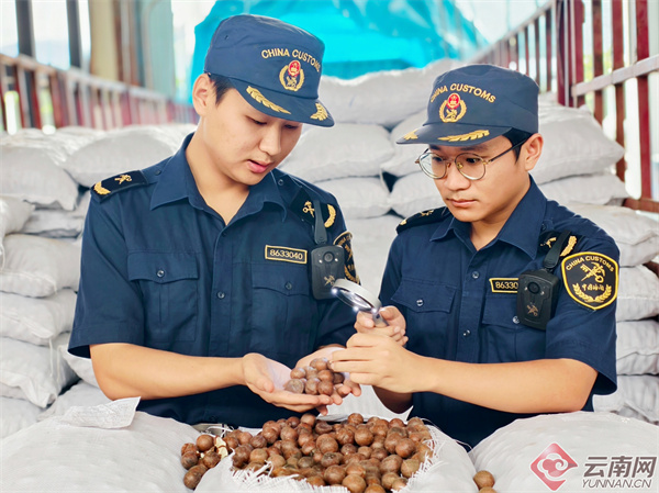 在进口环节,该关严格开展进口食品监管工作,重点核查境外生产企业及植物检疫证书的有效性、商品是否携带检疫性有害生物、包装标识合规性等,并按指令开展监督抽检,守牢质量安全底线。全面推广“提前申报”“单证预审”等便利化措施,保障首批缅甸夏威夷果安全、高效入境,同时积极宣讲原产地规则清单、关税减让等惠企政策,助力企业定制最优贸易方案,有效降低通关成本。