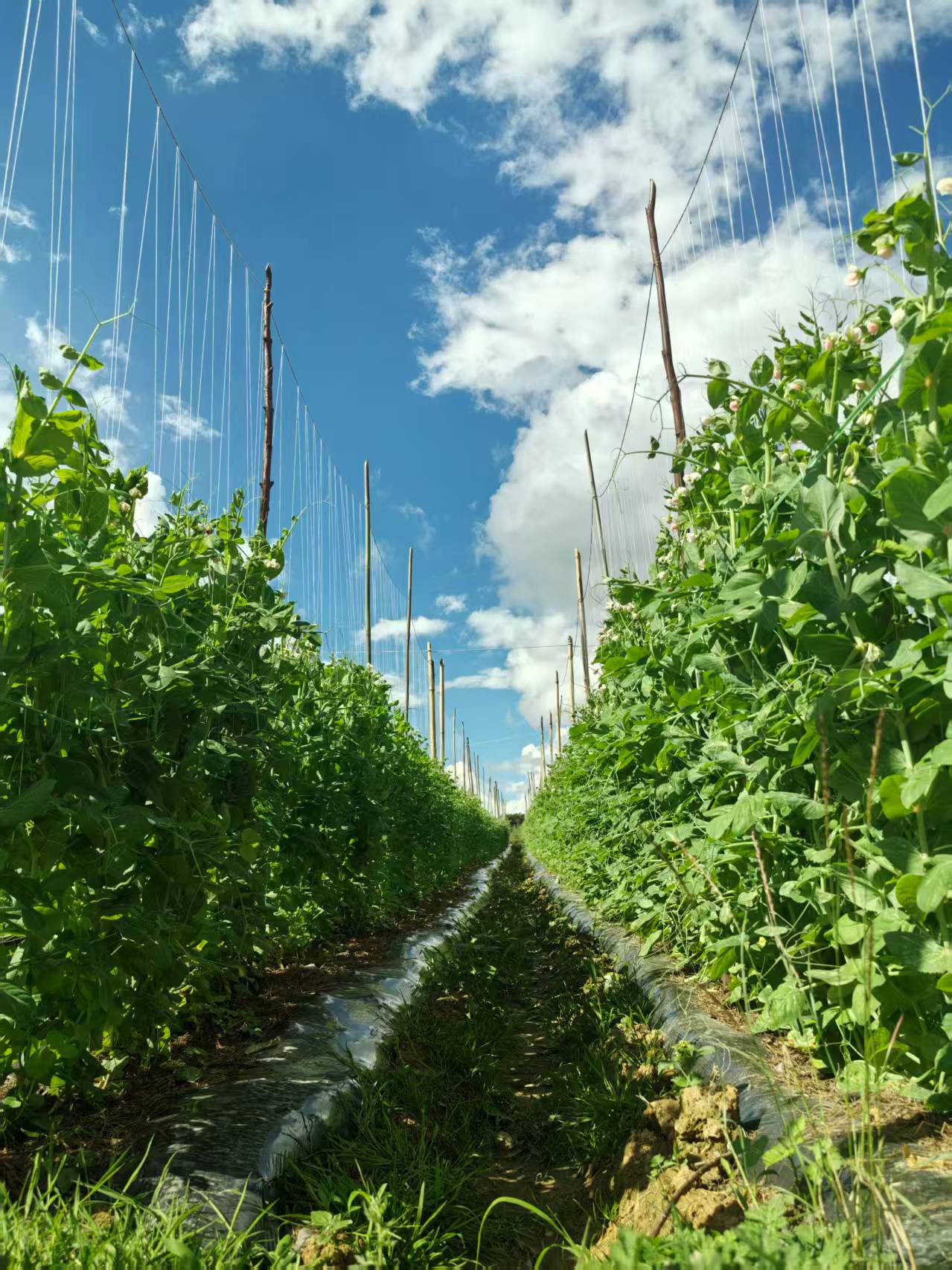 田垄之间,翠绿的豆蔓上挂满累累豆荚,嫩绿的荚果在阳光下晶莹透亮。“今年气候好,管理也更到位,豆荚结得又满又匀,”石桥河村种植大户周建章高兴地介绍,“照这个长势,亩产预计能超过300公斤,增产一成以上。”这些饱满的豆荚,不仅预示着丰收,更承载着农户对富裕生活的期待。