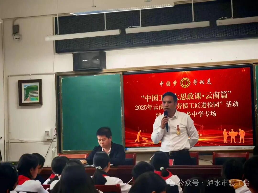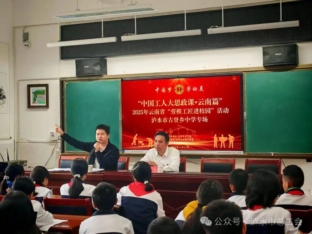 为深入学习贯彻党的二十大精神,大力弘扬劳模精神、劳动精神、工匠精神,2025年10月31日,“中国工人大思政课·云南篇”劳模工匠进校园活动走进国门学校,在古登乡中学举行,师生代表共计150余人参加。