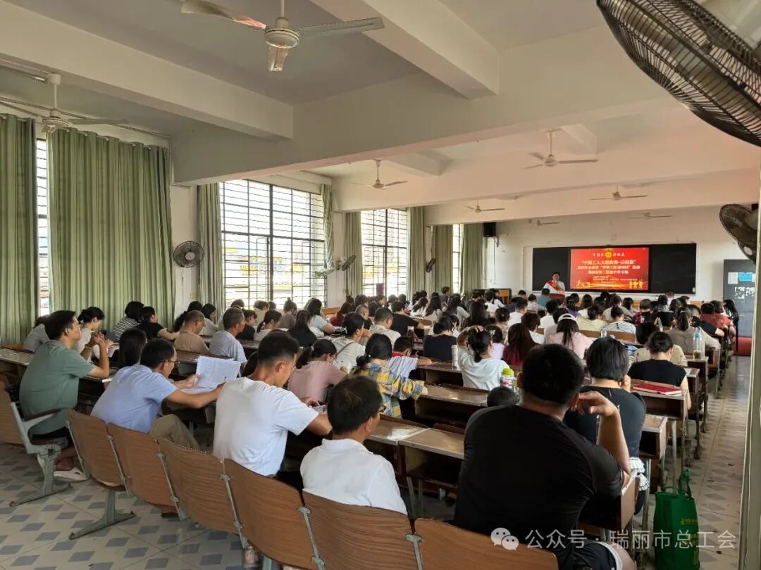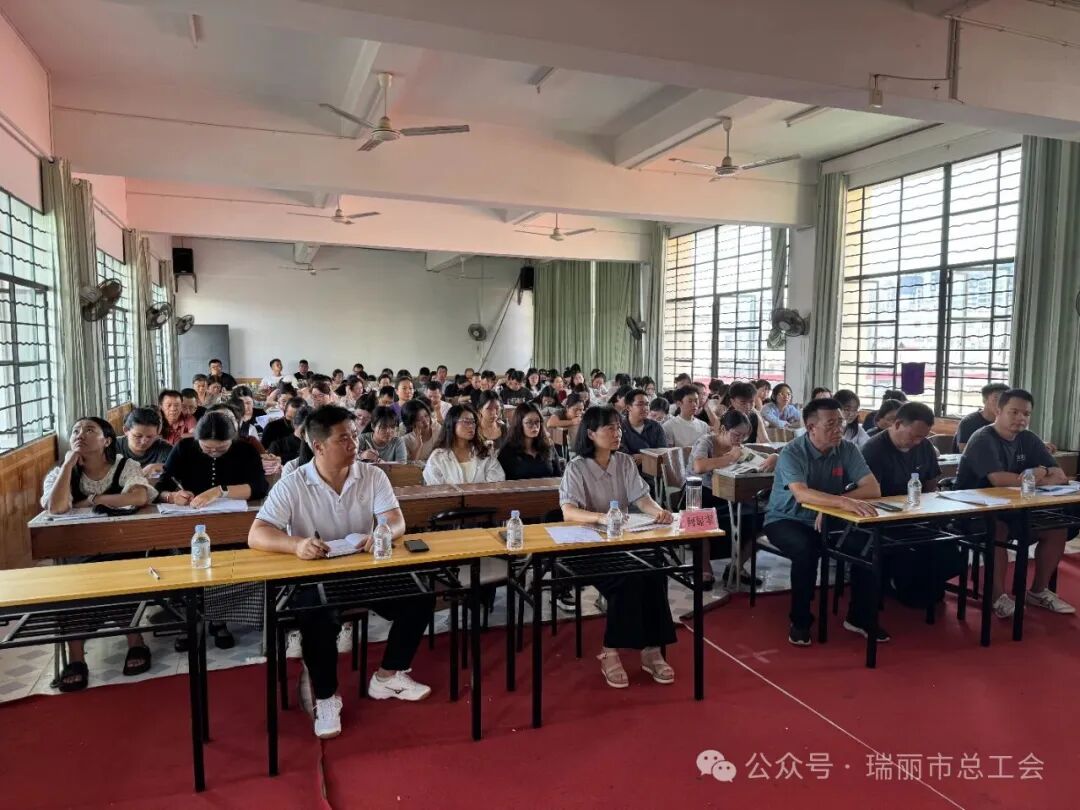 10月31日,瑞丽市总工会组织开展了"中国梦·劳动美——中国工人大思政课·云南篇"2025年云南省"劳模工匠进校园"活动。本次活动在瑞丽市第三民族中学顺利举行,共计200余名教职工参加,现场气氛热烈,教育热情与育人使命在此交织,劳动精神与奋斗力量在此共鸣。