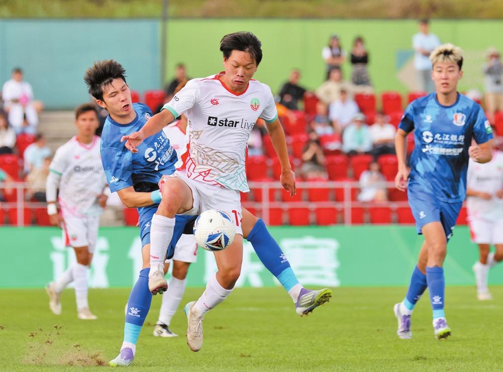 昆明城星足球俱乐部球员在比赛中。记者 周灿 摄