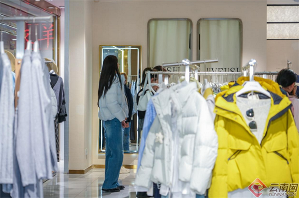 在一期服装区,七位来自俊发城的业主自发组成“时尚买手团”,互相参考搭配,精心挑选心仪服饰。俊发城文倾苑的张媛女士选中一件价值300元的外套。她打开手机中的俊发七彩物业小程序,进入“我的”消费券页面,用6张面值50元的美物券完成支付。店主王女士表示,这波消费券带来的客流非常明显,一上午的客流量几乎是平时的三倍,很多业主直接使用美物券选购秋冬新装,成交率特别高。