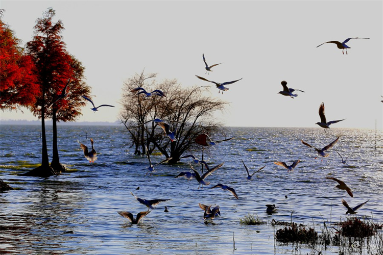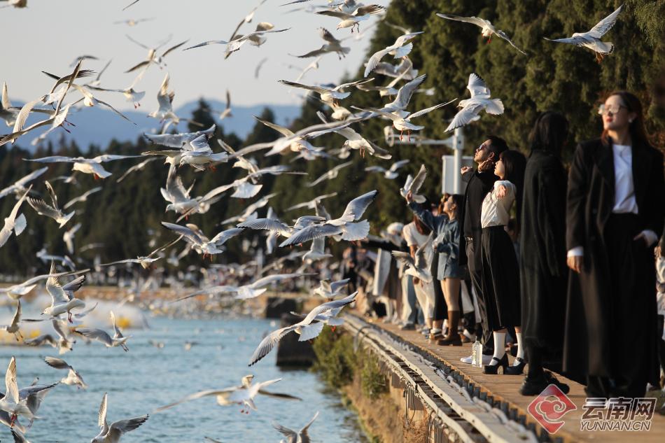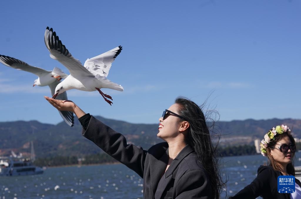 冬日海洪湿地公园,红嘴鸥飞舞的滇池岸边,处处呈现人鸥和谐同乐的美景。记者 杨峥 高吴双 摄