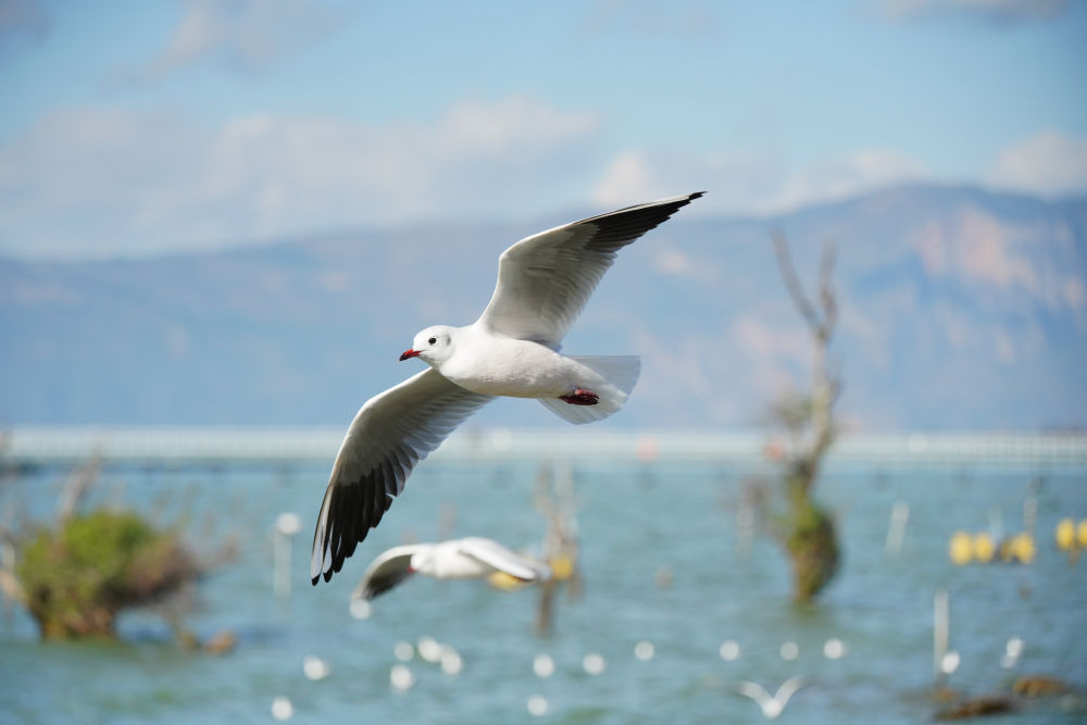 福保半岛依滇池而建,绵长的观鸥大道是绝佳点位。清晨时分,阳光洒在水面,成群的海鸥舒展翅膀掠过岸边,时而低空盘旋,时而俯身戏水,随手一拍都是自带滤镜的大片。