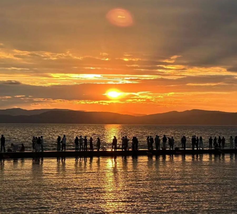 这里成群结队的海鸥在空中肆意翱翔,或许是这里的空间更大、游客更少,因此这里的海鸥更显俏皮灵动~沙滩细腻、湖水清澈,日落时分,波光粼粼的湖面与绚丽的晚霞交相辉映,红嘴鸥飞舞在落日余晖之间,每一帧都唯美。