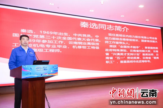 党的二十大代表、“全国技术能手”、云南省“五一劳动奖章”获得者秦选,以“匠心”为题,讲述自己技能报国的动人故事,他的故事不仅是个人成长的励志篇章,更是“干一行、爱一行、精一行”工匠精神的生动实践。他鼓励广大职工要不忘初心、感恩新时代,要立足岗位,传承技艺薪火,铸就匠心,以极致之心,走好技能报国之路。