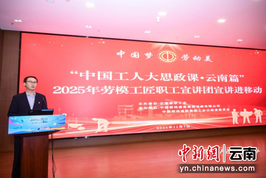 11月7日,为深入学习贯彻党的二十届四中全会精神,立足“十五五”规划开局起步的关键节点,由云南省总工会主办,中国移动云南公司承办的“中国工人大思政课·云南篇”2025年劳模工匠职工宣讲团宣讲进移动活动在中国移动云南公司曲靖分公司举行。活动通过线上线下相结合的方式,引导广大职工深刻领会全会精神,400余名职工参与了活动。