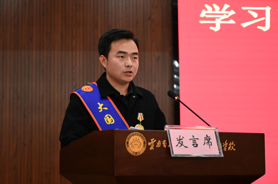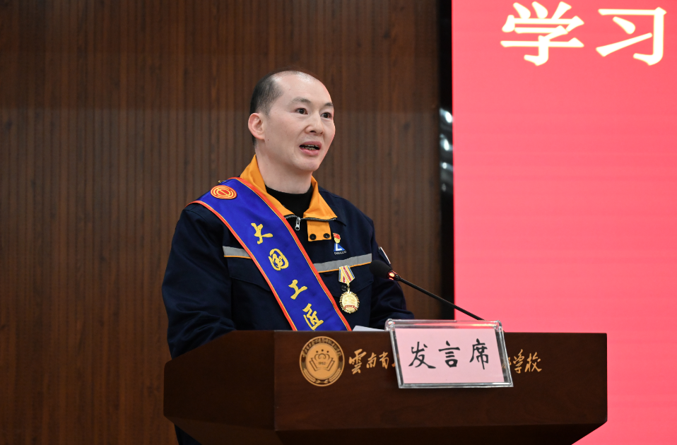 首先发言的是来自云南技师学院的郑棋元,他身穿整洁的深蓝色工装,胸前的奖章熠熠生辉。“党的二十届四中全会强调,要牢牢把握高质量发展这个首要任务,发展新质生产力。这为我们一线技术工人指明了前进的方向。”他回顾了自己从一名职教学子拼搏奋斗站上世界技能大赛之巅的艰辛历程,以及从选手到教师,致力技能人才培养、推广科技创新教育、创建科创工作室,成为技能成才、技能报国典范的经历。他的发言,充满了对技术的极致追求和对国家战略的深刻理解,台下听众、职工频频点头,深受触动。