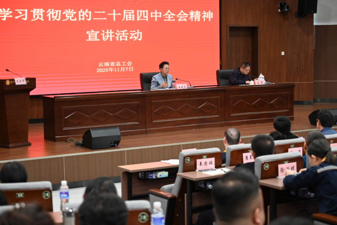 宣讲强调,四中全会精神对工会组织最直接、最明确、最具体的要求,就是要加强产业工人队伍建设,要准确把握“十五五”时期建设现代化产业体系的要求,找准产业工人队伍建设改革的方向。要结合云南的实际,紧紧围绕产业发展的需要,精准发力,进一步深化产业工人队伍建设改革,提升产业工人的技能素质。要以更大魄力更实举措,推动产业工人队伍建设取得新成效。要突出抓实产教融合培训提升、抓实成长成才平台建设、抓实职业发展通道畅通“三个抓手”,聚焦提升产业工人地位待遇、先进典型选树宣传“两个重点”,开展国企民企产改结对、“五个一工作法”、省级产改试点单位负责人培训、打造产改特色品牌“四个行动”,紧紧围绕重点产业发展对技能人才的需求,实施“十百千万”高技能人才培育工程,力争“十五五”时期全省新增培育15名左右大国工匠人才、150名左右云岭工匠、1500名左右市级工匠、高技能人才总量达到300万人,以工匠人才为引领,带动一流产业工人队伍建设,为推动我省产业转型升级和经济社会高质量发展提供有力人才保障和技能支撑。